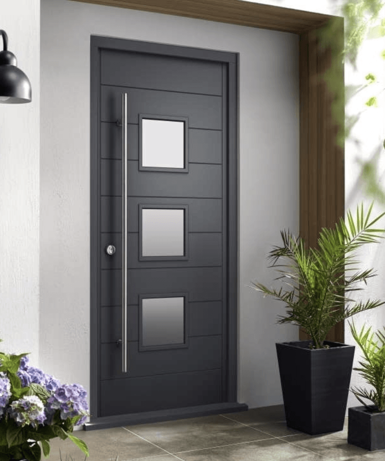 There is a huge choice of doors styles and colours. It starts with the conventional PVCU door with or without midrail. You might choose glass top and bottom or a panel at the bottom – letter plate – knocker – spyhole, they are all there for you to choose.
